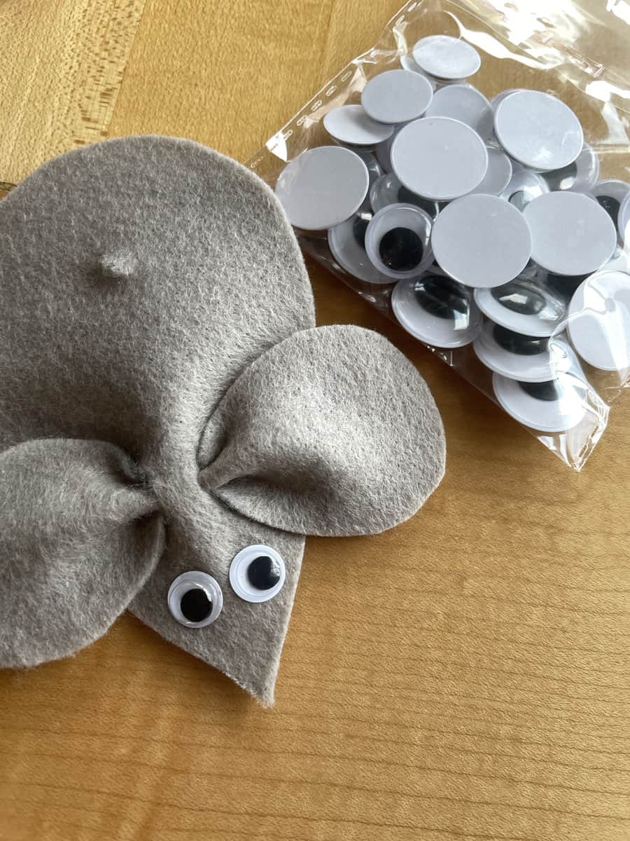 We used grey paper and felt, but that doesn’t mean you have to! Get as creative as you’d like with your colors. If you’re using paper, the ears may be hard to stick through those holes, so feel free to glue the ears on instead. We’d love to see your creations – tag us on Facebook or Instagram with your mouse-y masterpieces!